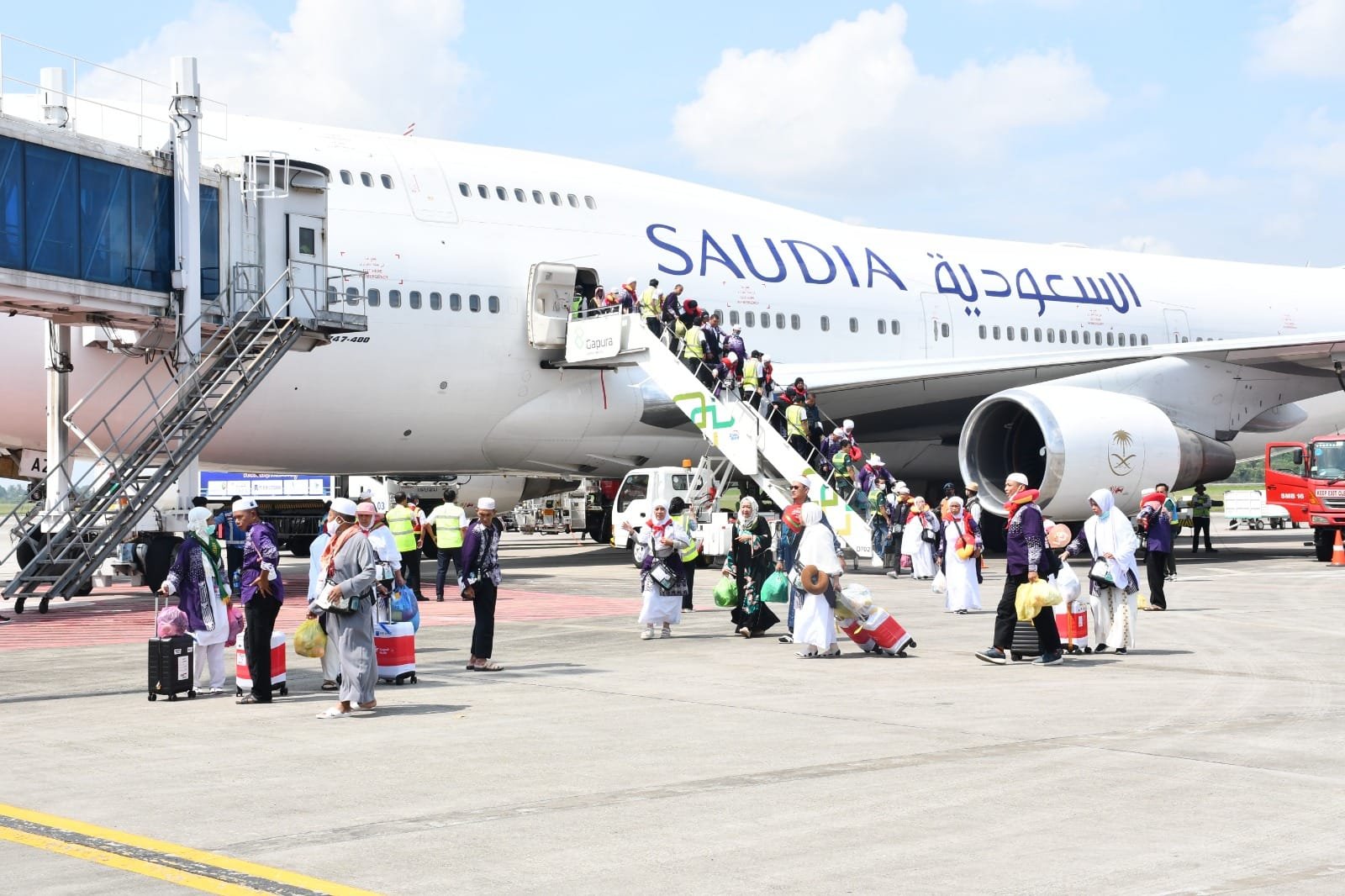 Intinews |Sebanyak 441 jemaah haji Kloter 14 Debarkasi Palembang tiba di Bandara Sultan Mahmud Badaruddin II Palembang, Rabu (10/07/2024) siang. Kloter 14 merupakan gabungan jemaah asal Palembang dan Kabupaten Lahat.