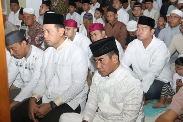 Kapolda Sumsel Irjen Pol Andi Rian R Djajadi, SIK, MH Wakapolda Sumsel Brigjen Pol M. Zulkarnain, SIK, M.Si, pejabat utama Polda, personel Polda Sumsel, Ketua Bhayangkari Sumsel Ny Dewwy Andi Rian beserta pengurus dan masyarakat sekitar turut hadir dalam sholat Idul Fitri tersebut.