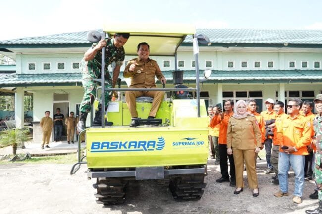 Intinews | Bupati Banyuasin, Dr. H. Askolani, S.H., M.H., bersama Wakil Bupati Banyuasin, Netta Indian, S.P., didampingi Inspektur Banyuasin, Ir. Zakirin, S.P., M.M., CGCAE., dan Kepala OPD terkait melakukan penyerahan Bantuan Alat dan Mesin Pertanian (Alsintan) dari Kementerian Pertanian Tahun Anggaran 2025 untuk brigade pangan yang ada di wilayah Banyuasin, Selasa (15/07/2025).