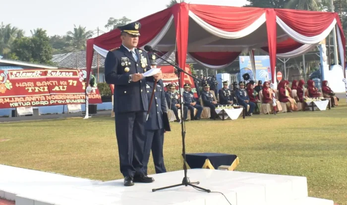 Intinews | Lanud Sri Mulyono Herlambang (SMH) Palembang menggelar upacara Peringatan Ke-77 Hari Bakti TNI AU Tahun 2024 bertempat di lapangan apel Lanud SMH, Senin (29/07/2024).