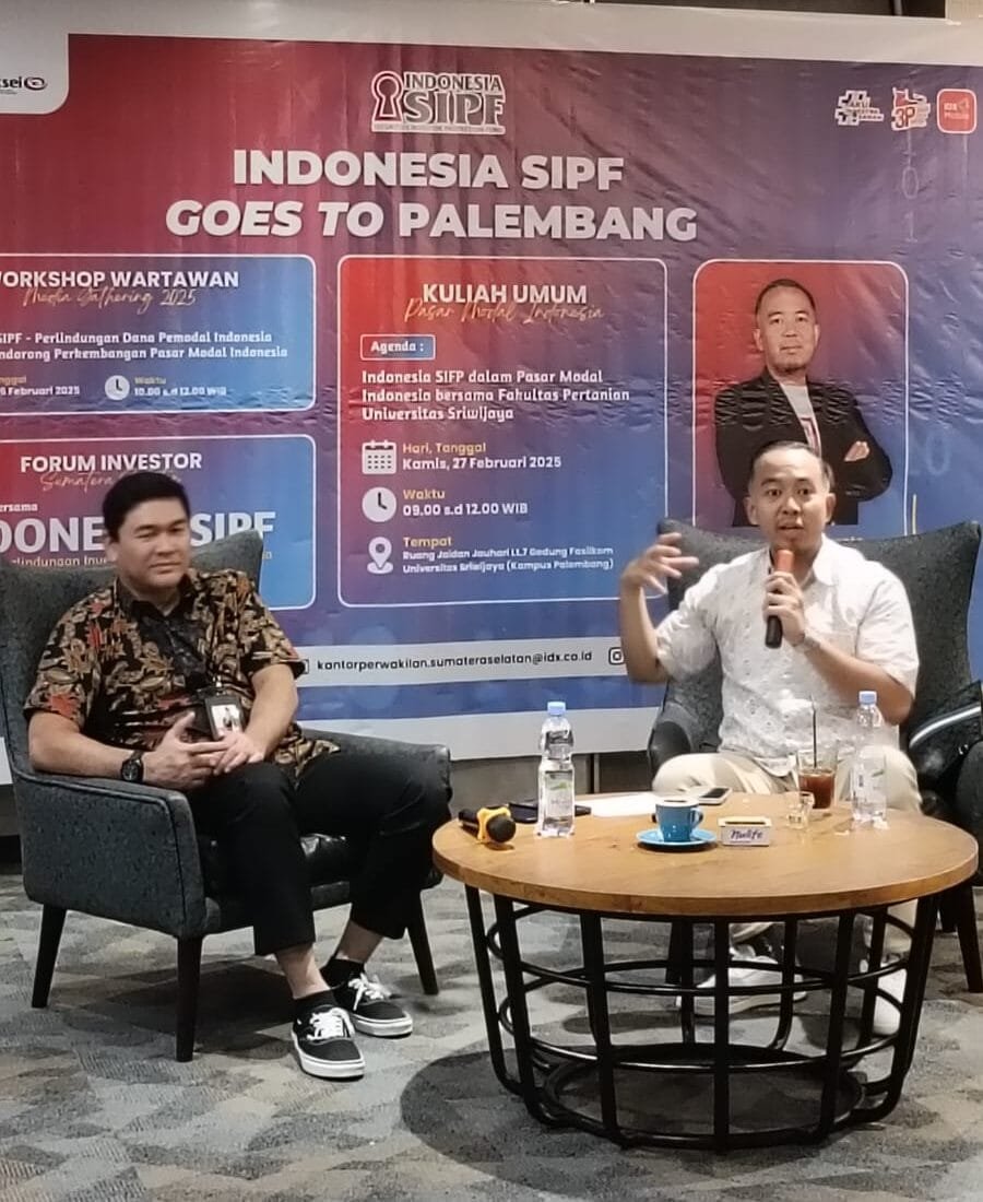 Intinews | Indonesia Securities Investor Protection Fund (SIPF) dibawah PT Penyelenggara Program Perlindungan Investor Efek Indonesia (PPPIEI) dan Bursa Efek Indonesia (BEI) Sumatera Selatan (Sumsel) mengadakan Workshop bersama Media dengan tema “Perlindungan Dana Pemodal Investor sebagai Pendorong Perkembangan Pasar Modal Indonesia” di Hotel All Nite & Day Palembang, Rabu (26/2/2025).