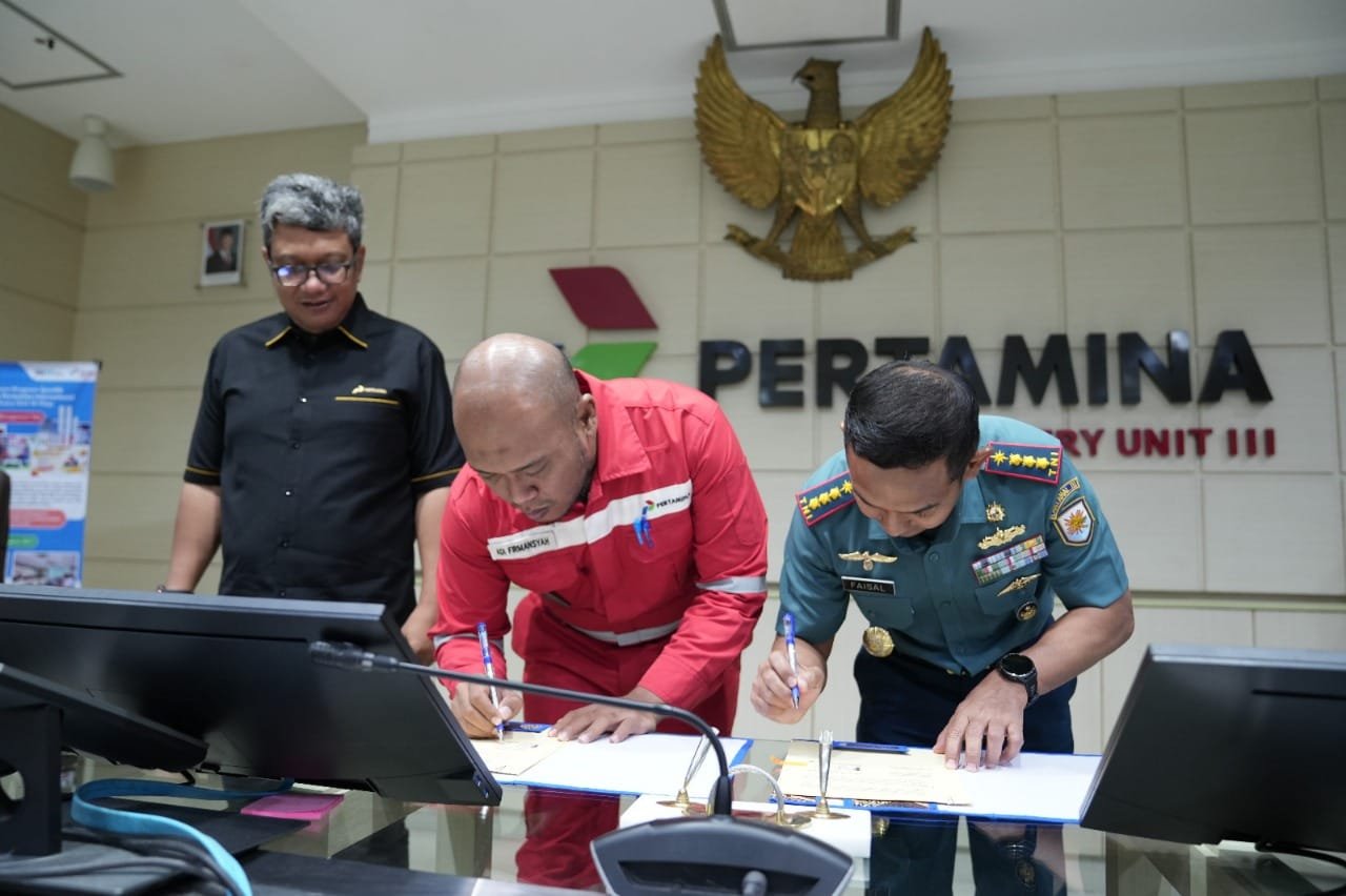 Manager HSSE RU III Adi Firmansyah, disaksikan General Manager (GM) Hermawan Budiantoro telah meneken Perjanjian Kerja Teknis (PKT) bersama Komandan Pangkalan TNI AL (Lanal) Palembang Kolonel Laut (P) Faisal untuk kerjasama pengamanan tahun 2025, Selasa (17/12/2024)