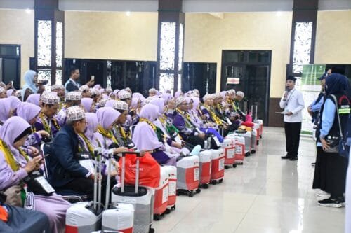 Intinews | Panitia Penyelenggara Ibadah Haji (PPIH) Embarkasi Palembang menerima kedatangan jemaah haji kelompok terbang (kloter) 4 asal Kota Palembang di Gedung Serbaguna Asrama Haji Sumsel, Selasa (06/05/2025). Satu jemaah dirujuk ke Rumah Sakit Siti Fatimah setelah sebelumnya diperiksa di poliklinik embarkasi.