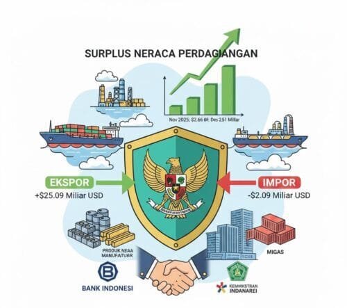 Intinews | Indonesia kembali mencatatkan rapor hijau pada performa perdagangan internasional di penghujung tahun 2025. Badan Pusat Statistik (BPS) melaporkan neraca perdagangan Indonesia periode Desember 2025 sukses membukukan surplus sebesar 2,51 miliar dolar AS.