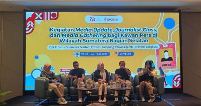 Hal ini disampaikan Kepala OJK Provinsi Sumsel, Arifin Susanto dalam kegiatan Media Update bersama rekan-rekan media dari Provinsi Sumsel, Jambi, Bengkulu dan Lampung, di Ballroom Hotel Holiday Inn, Lampung (28/11/2025). OJK Sumsel turut mengapresiasi peran media dalam menciptakan ruang informasi publik yang edukatif mengenai sektor jasa keuangan.