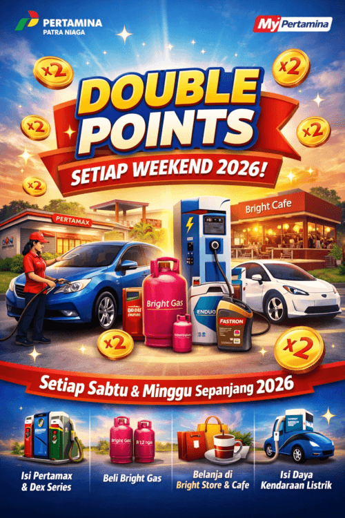 Intinews | Kabar baik bagi pelanggan setia Pertamina. Sepanjang tahun 2026, Pertamina Patra Niaga kembali menghadirkan program promo spesial berupa double points bagi pengguna aplikasi MyPertamina. Program ini berlaku setiap hari Sabtu dan Minggu, mulai 3 Januari hingga 27 Desember 2026, tanpa minimum transaksi sesuai dengan grading pelanggan.