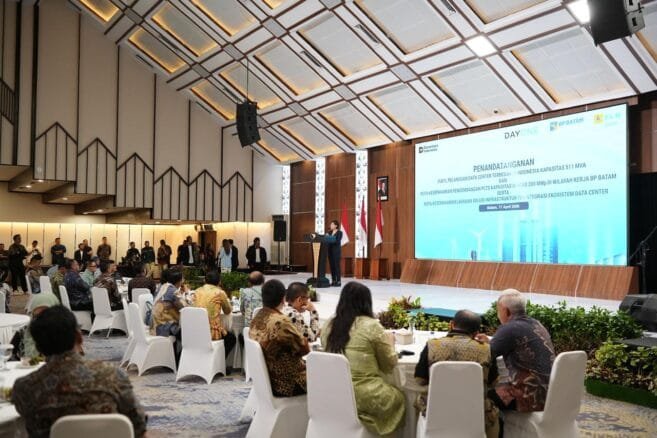 Intinews | PT PLN (Persero) melalui PT PLN Batam terus mendukung pengembangan industri digital tanah air, termasuk proyek data center global PT Digitalland Service One (DayOne) di kawasan industri Kabil Industrial Estate, Batam. Hal ini tercermin melalui penandatanganan Perjanjian Jual Beli Tenaga Listrik (PJBTL) dengan kapasitas terbesar untuk data center di Indonesia hingga saat ini, yakni 511 megavolt ampere (MVA), yang diselenggarakan di Auditorium Balairung Sari, Badan Pengusahaan (BP) Batam, Jumat (17/4).