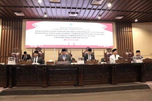 “Berdasarkan ketentuan Pasal 32 ayat (2) huruf b Peraturan DPRD Provinsi Sumatera Selatan Nomor 19 Tahun 2025 tentang Perubahan Kedua atas Peraturan DPRD Nomor 22 Tahun 2020 tentang Tata Tertib DPRD, selanjutnya akan disampaikan pandangan umum dari fraksi-fraksi DPRD,” ujar Andie.