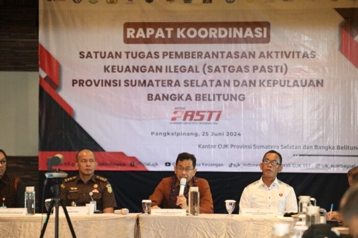 Intinews | Otoritas Jasa Keuangan Provinsi Sumatera Selatan dan Bangka Belitung (OJK Sumsel Babel) terus berkomitmen dalam upayanya melindungi masyarakat, di antaranya dengan menyelenggarakan koordinasi dalam rangka pencegahan dan penangan aktvitas keuangan illegal dalam forum Satuan Tugas Pemberantasan Aktivitas Keuangan Ilegal (SATGAS PASTI) Daerah Provinsi Sumatera Selatan dan Kepulauan Bangka Belitung, Selasa (25/6).