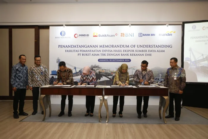 Intinews | PT Bukit Asam Tbk (PTBA) melakukan penandatanganan Nota Kesepahaman (Memorandum of Understanding/MoU) Fasilitas Pemanfaatan Devisa Hasil Ekspor Sumber Daya Alam (DHE SDA) dengan 3 bank rekanan, yaitu PT Bank Negara Indonesia (Persero) Tbk (Bank BNI), PT Bank Rakyat Indonesia (Persero) Tbk (Bank BRI) dan PT Bank Mandiri (Persero) Tbk (Bank Mandiri).