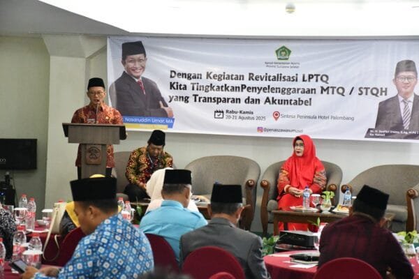 Intinews | Bidang Penerangan Agama Islam Zakat dan Wakaf Kanwil Kemenag Sumsel menggelar kegiatan Revitalisasi Lembaga Pengembangan Tilawatil Quran (LPTQ) di Hotel Sintesa Peninsula, Palembang, 20-21 Agustus 2025. Kegiatan ini diikuti 40 peserta se-Sumsel dan dibuka Kakanwil Kemenag Sumsel H. Syafitri Irwan, Rabu (20/08/2025) pagi.